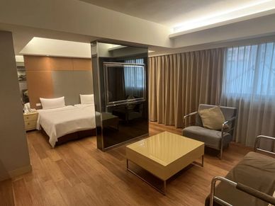 There is a parking lot attached to the hotel, which provides business meeting rooms, conference rooms that can accommodate 40 people, and well-equipped KTV equipment, suitable for holding small and medium-sized celebrations. In addition, we also provide a variety of facilities, such as a gym with a variety of equipment, self-service laundry and dryer services, and free 24-hour local snacks such as coffee or tea. The room is equipped with a safe, small refrigerator, TV and Wi-Fi.
